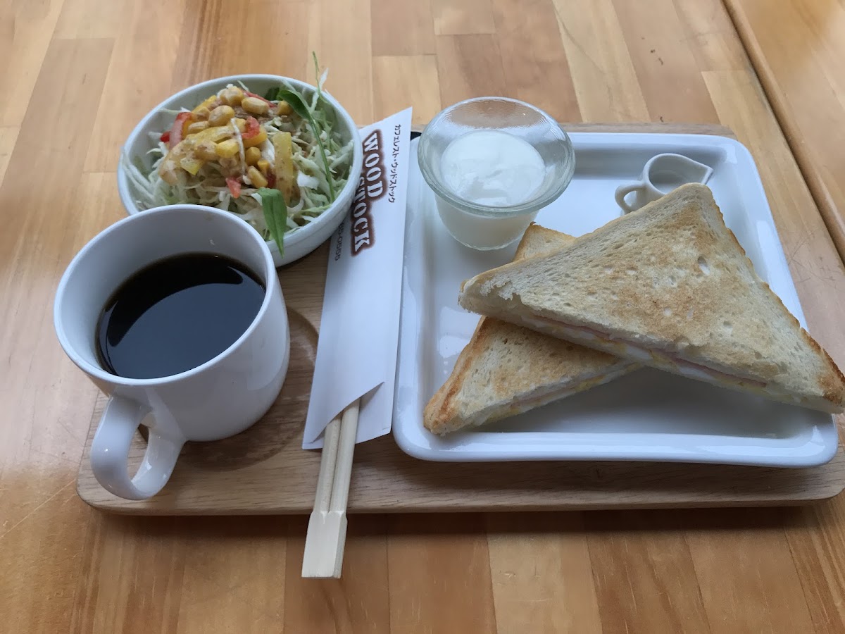 Wood Stock specializes in a delightful range of brunch and lunch options. Start your day with their モーニング (Morning) set, featuring a delectable トーストセット for just ¥750. This delightful meal includes crispy toast accompanied by a fresh salad, a perfectly cooked fried egg, crispy bacon, creamy yogurt, and your choice of drink or dessert—everything you need for a satisfying breakfast. It’s a fantastic way to fuel your day in Kasaoka!